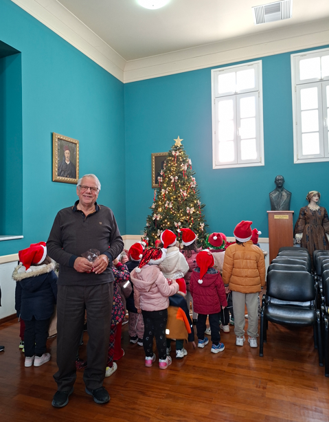 Σήμερα, Παρασκευή 19 Δεκεμβρίου 2025, η αίθουσα συνεδριάσεων του Δημοτικού Συμβουλίου γέμισε χαμόγελα και γιορτινή διάθεση. Ο Δήμαρχος Δυτικής Σάμου, κ. Θεμιστοκλής Παπαθεοφάνους, υποδέχτηκε με μεγάλη χαρά τις μαθήτριες και τους μαθητές του 1ου Νηπιαγωγείου Νέου Καρλοβασίου, συνοδευόμενους από τις αγαπημένες τους νηπιαγωγούς, καθώς και των Δημοτικών Σχολείων των χωριών της Υδρούσσας και των Κουμαιίκων με τη συνοδεία των δασκάλων τους.