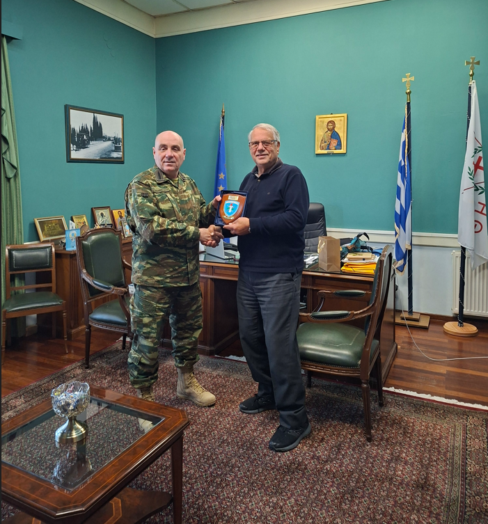 Κατά τη διάρκεια της συνάντησης, ο Δήμαρχος εξέφρασε τα θερμά του συγχαρητήρια για την πρόσφατη προαγωγή του στον βαθμό του Υποστρατήγου, επισημαίνοντας ότι η εξέλιξή του αποτελεί έμπρακτη αναγνώριση της προσφοράς, της αφοσίωσης και του υψηλού αισθήματος ευθύνης που έχει επιδείξει στην υπηρεσία του προς τις Ένοπλες Δυνάμεις και την πατρίδα. Ευχήθηκε καλή δύναμη, υγεία και κάθε επιτυχία στα νέα του καθήκοντα και παρέλαβε από τον υποστράτηγο τιμητική πλακέτα με το έμβλημα της Ταξιαρχίας.